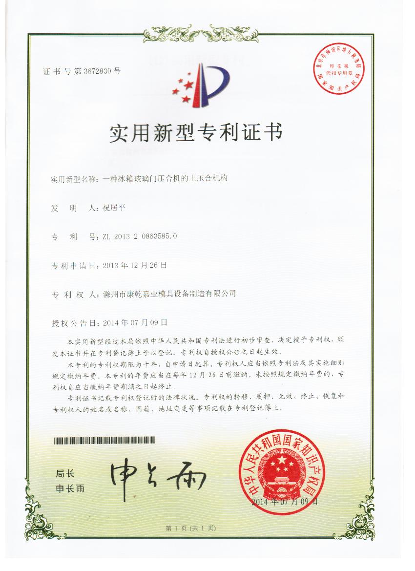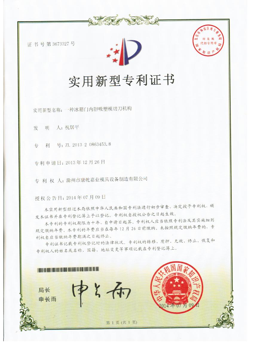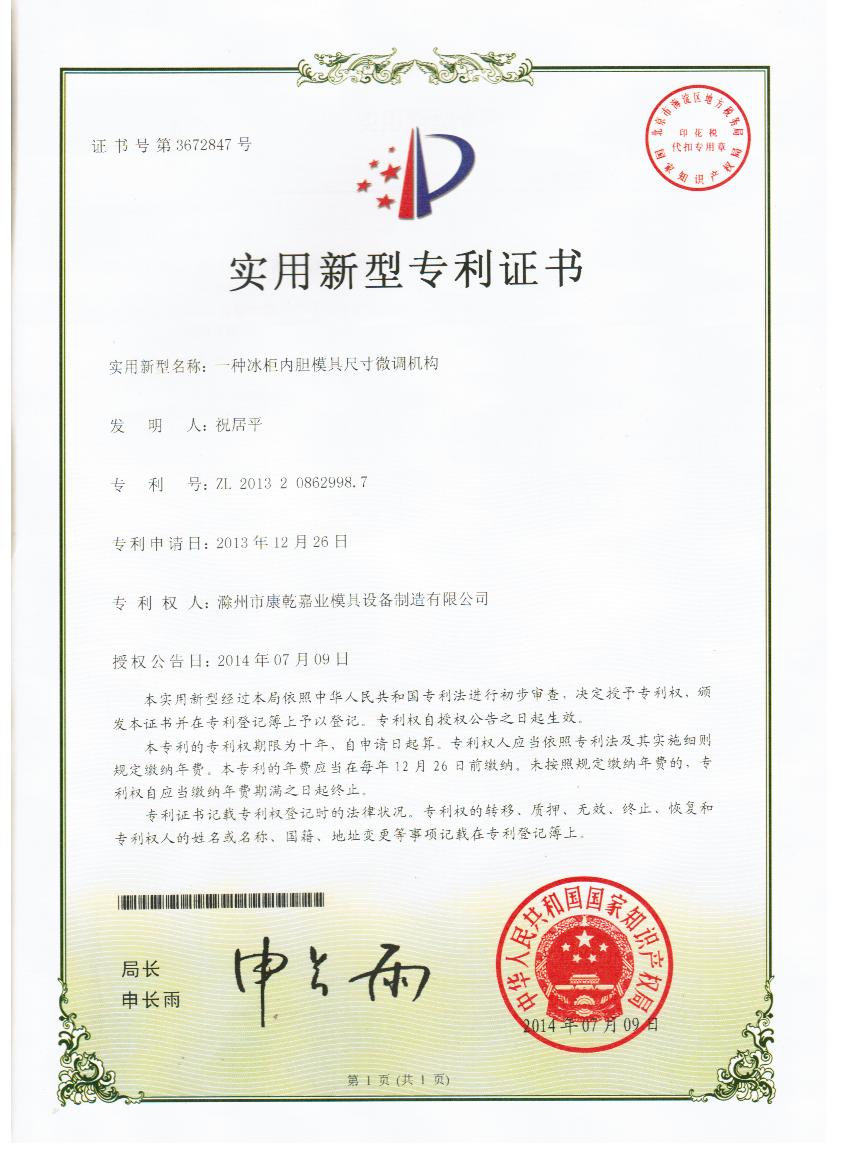 當(dāng)前位置:首頁(yè) > 新聞中心滁州市康乾嘉業(yè)喜獲國(guó)家知識(shí)產(chǎn)權(quán)局頒發(fā)的五項(xiàng)實(shí)用新型專利證書(shū)! |