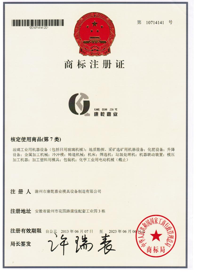 當(dāng)前位置:首頁 > 新聞中心滁州市康乾嘉業(yè)商標(biāo)注冊成功! |